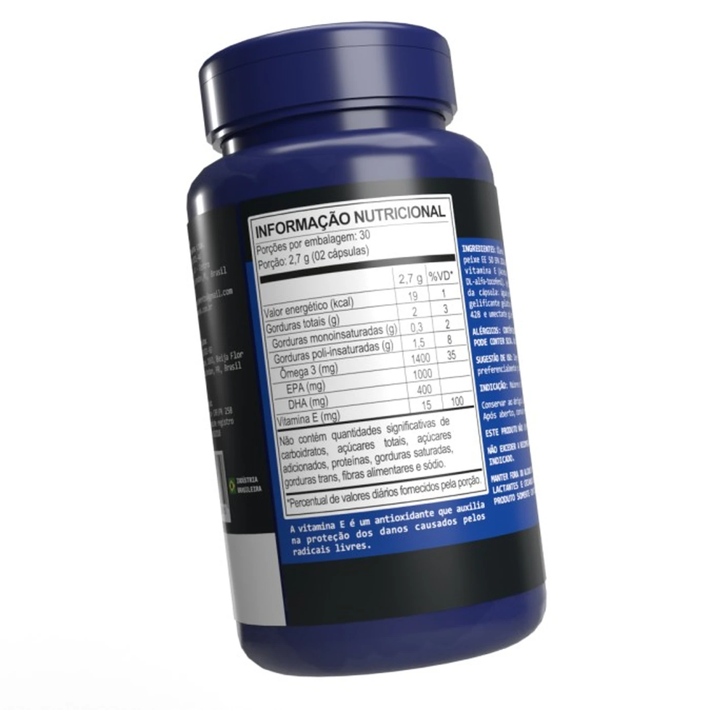 - Ingredientes: óleo de peixe EE 50 EPA 20 DHA e vitamina E (acetato de DL-alfa-tocoferol).