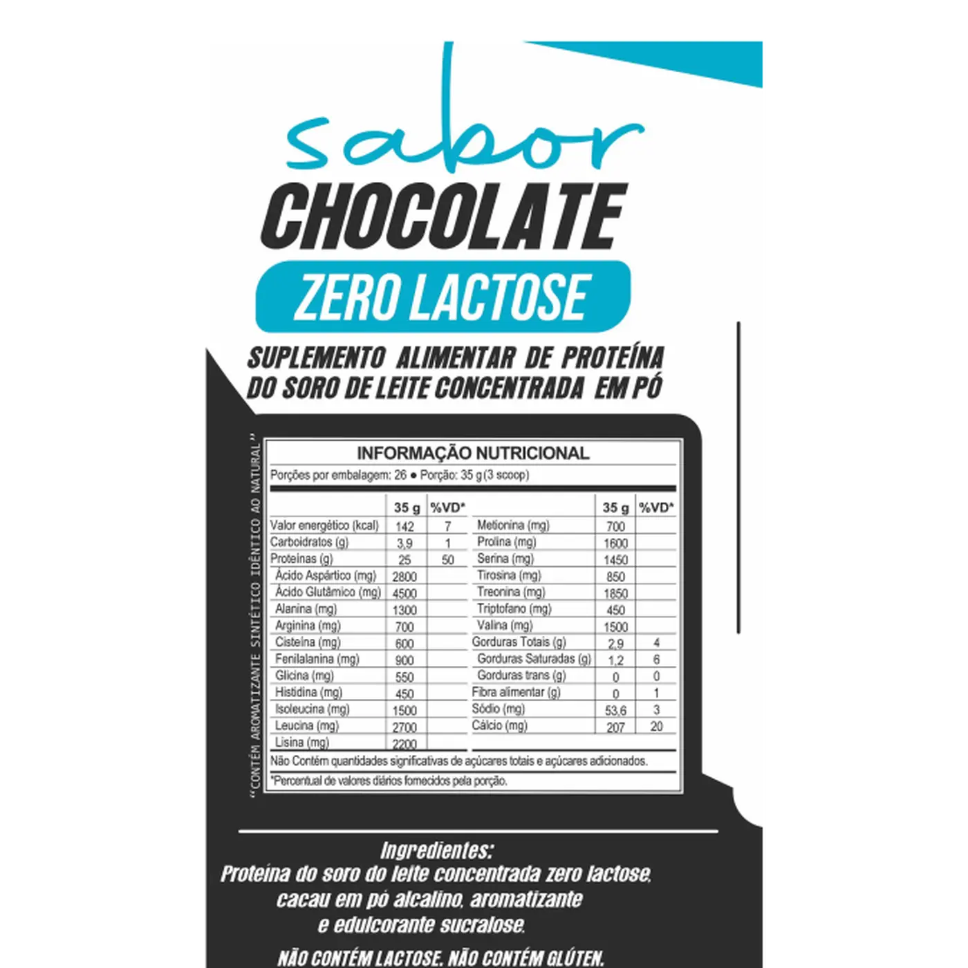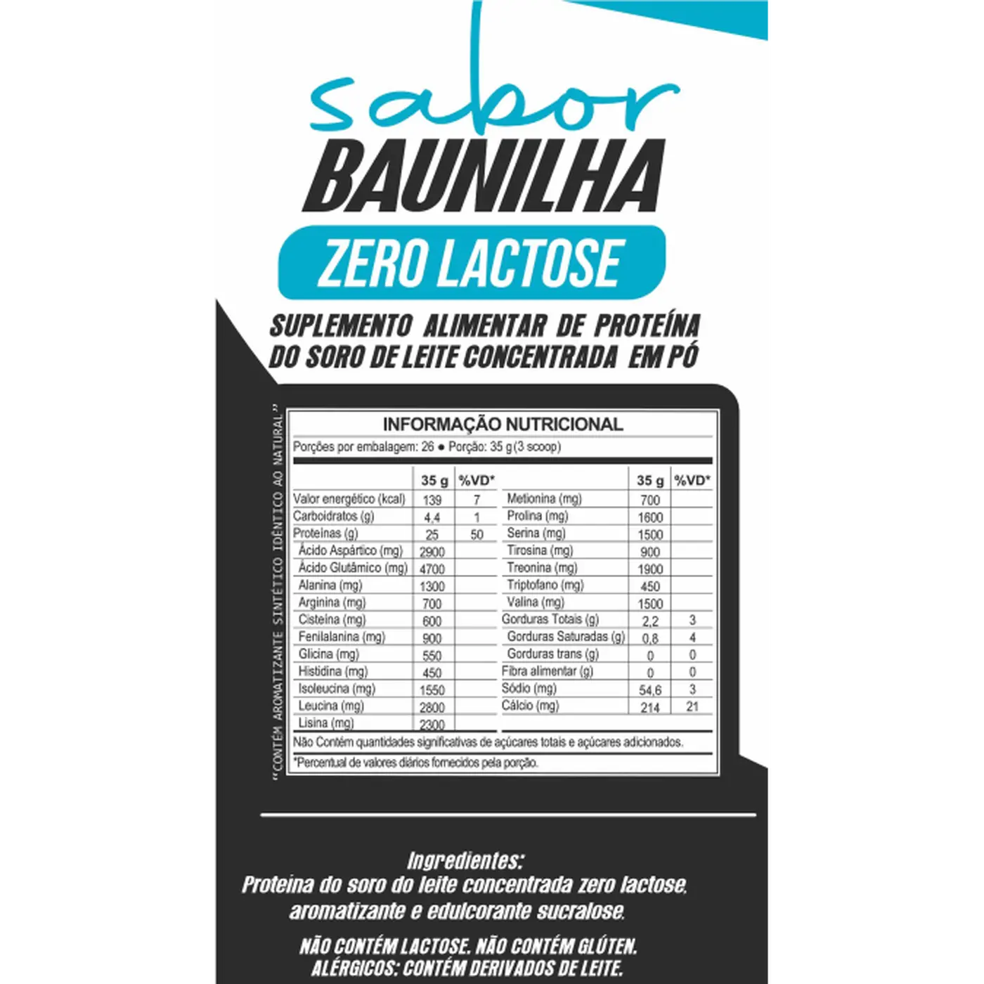 Consulte o rótulo do produto para a tabela nutricional completa e o perfil de aminoácidos.